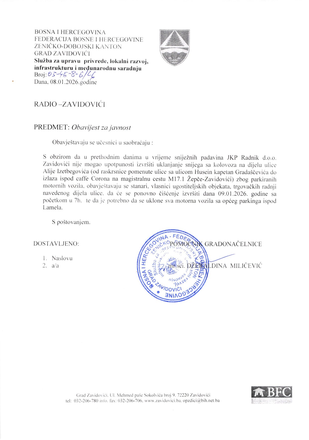 E- mail: grad.zavidovici@zavidovici.ba
